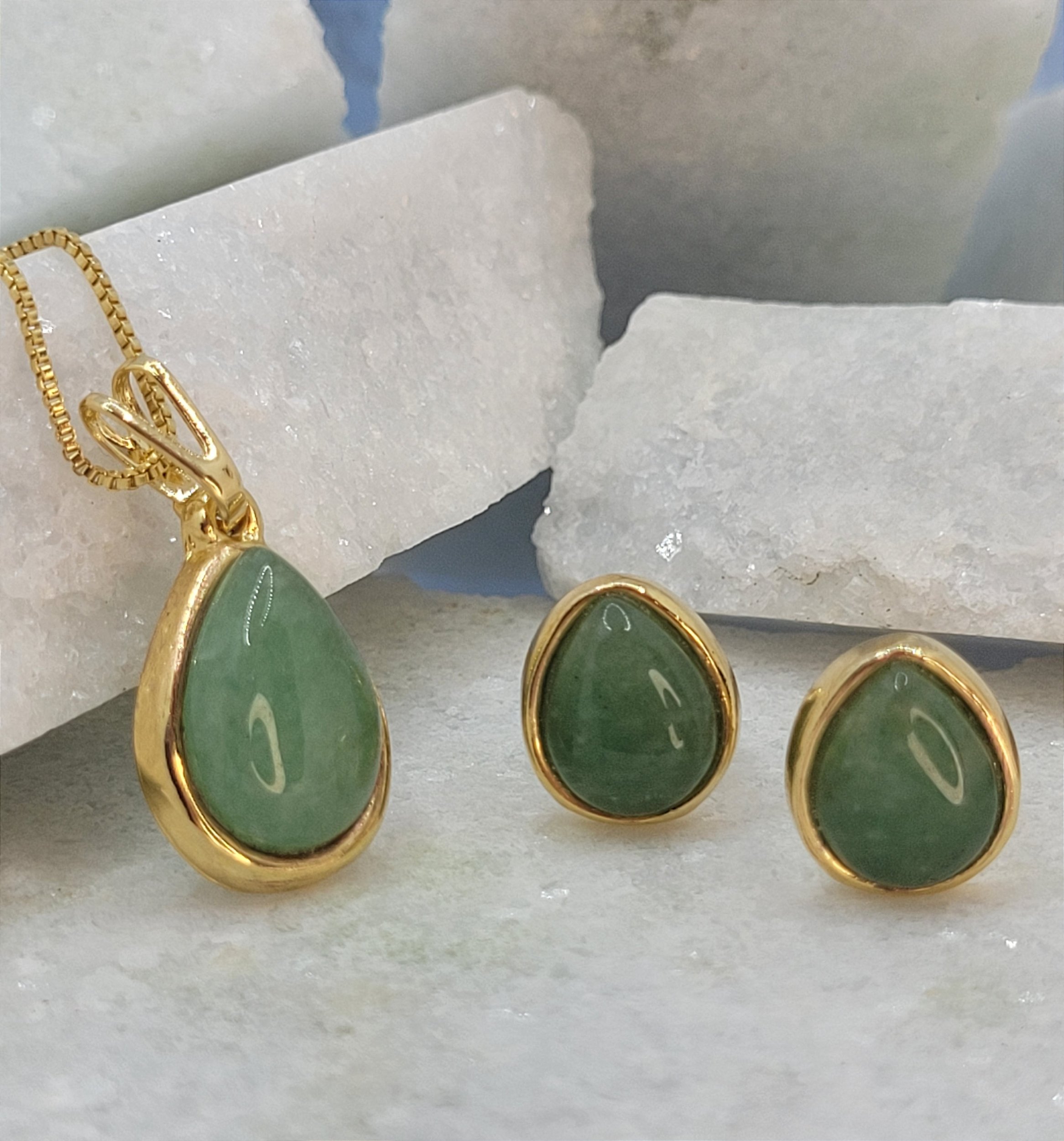 Conjunto banhado a ouro 18k com pedrasde quartzo verde.