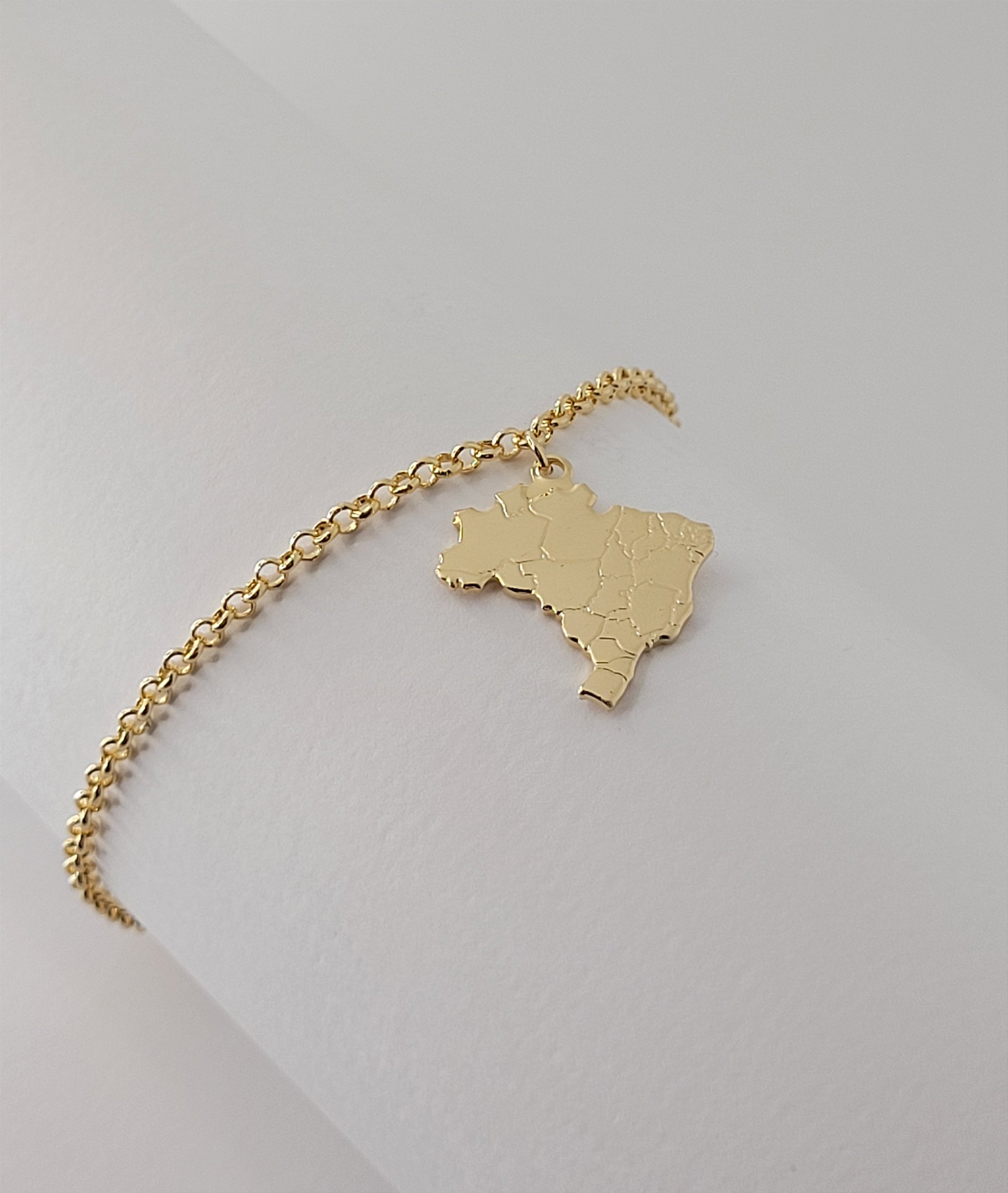 Pulseira banhada a ouro 18k com medalha do mapa do Brasil, com as divisões dos Estados.
